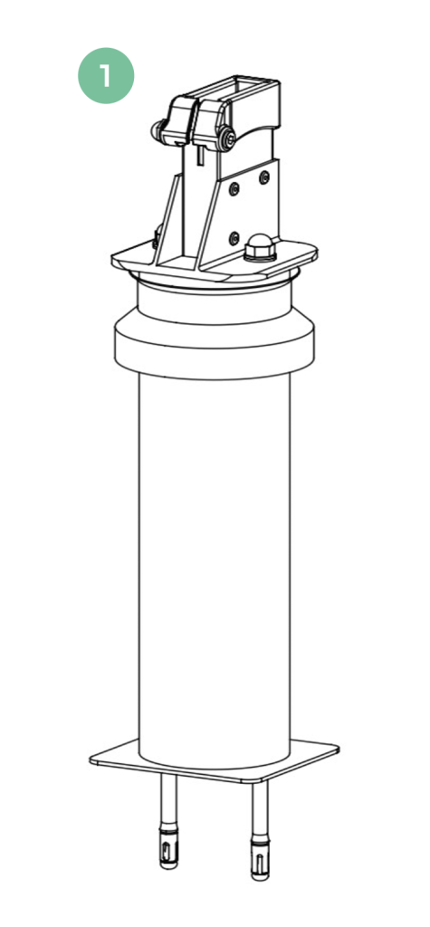 - Fijación de las bases sobre hormigón no fijado C20/C25 mediante 2 tacos M10 (opcional, ver « Esfuerzos en las fijaciones » P.34 y manual técnico)
